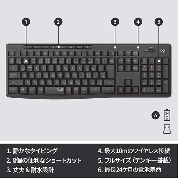 K295GPは、ロジクールのUnifying USBレシーバーを採用。最大10mの安定した無線接続が可能です。
